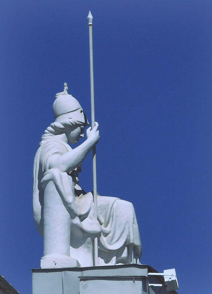 - Статуя богини Афины (Минервы) на главном здании РНБ.